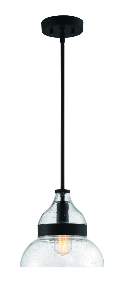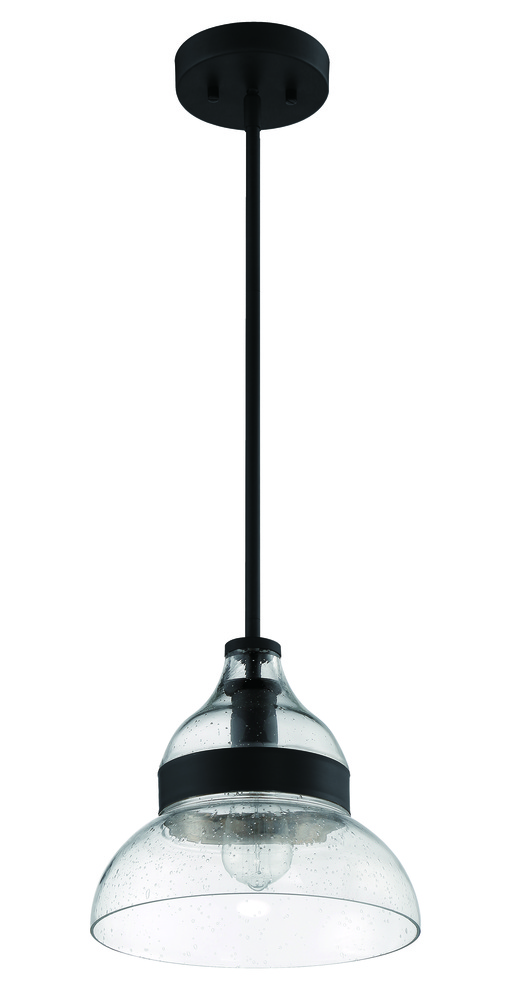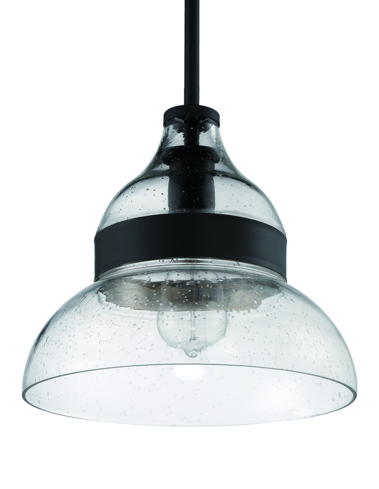 These rod hung clear seeded glass shade with brushed nickel or flat black metal band and canopy single light Smyth pendants capture the essence of style with the ability to customize the height and bulb up to 100W.