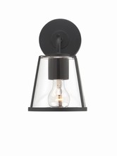 The tailored and versatile Fulton wall sconce has contrasting materials to create an eye-catching display. This fixture features a tapered glass shade that casts illumination downwards, providing bright illumination to your modern bathroom. The white or clear glass is wrapped in a metal ring with tailored lines creating an elegant contrast. Finishes include Polished Nickel, Antique Gold, and Matte Black.