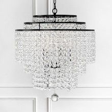 The beautiful Gabrielle silhouette is made of cascading faceted hand-cut crystal strands suspended from its delicate frame. The framework is crafted in wrought iron and available in antique gold, and matte black finishes. Elevate your living space and add character to a room with the Gabrielle collection.