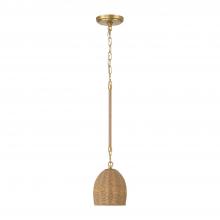 If cozy, paired-back, and relaxed style defines your home interior choices, the textural Jace pendant light is what you have been looking for. The natural warmth of organic Jute has a light and airy feeling that adds architectural interest to any space. The downward-facing rod is accented with wrapped Jute with a gold finish, creating a beautiful tone-on-tone look. This versatile collection seamlessly blends in modern, coastal, and even traditional styles. Bulb included.