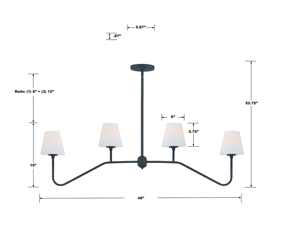 Less is more with the sleek minimalist Keenan collection. The fixture combines thin, angular arms with white glass shades for a modern touch, easily incorporated into various rooms and design styles. A cone-shaped white glass shade tops the bulb exuding a soft, ambient glow that is perfect for kitchens, dining rooms, or living room.