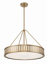 The contemporary Kendal collection makes a statement with its graphic uniform pattern. Its metal frame surrounds white glass in this elegant drum-shaped pendant. The high contrast of Vibrant Gold, Black Forged, or Polished Nickel against white glass is a great way to add a touch of drama to a room.