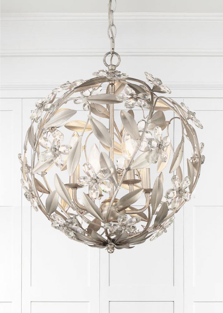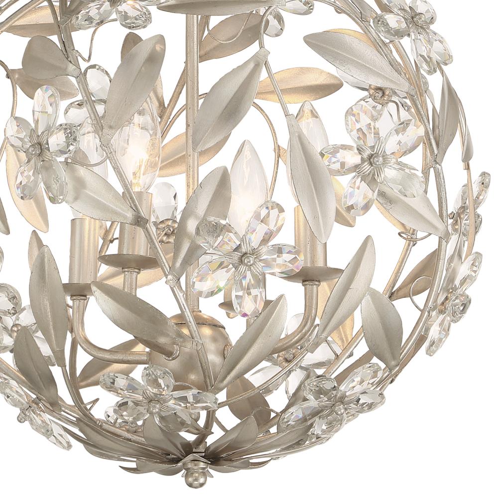 The Marselle Collection is adorned with hand-cut crystal jewels and wrought iron leaves designed in a playful arrangement. The detail of leaves and intricate floral designs lend a sense of organic artistry to each piece, creating a mesmerizing display of nature's splendor. Available in three sophisticated finishes—white, gold and silver, this collection offers a touch of opulence for every decor. The crystal jewels are cleverly connected to form delicate flowers, adding a touch of whimsy and charm to your space. Even the canopy features a leafy design, completing the harmonious blend of nature and art.