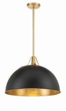 - Black metal dome pendant with gold accents.