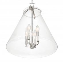 The Voss Collection is a sleek, enduring design with subtle angular details, offered in various finishes and sizes for your unique space. It’s clear glass cone-shaped pendant is closed on the bottom and fastened with metal on its open top. The patterned chain detail adds a touch of character to its streamlined design. The Voss Collection is not confined to a single style; it is a versatile design that suits a variety of spaces, from minimalist and modern to classic and eclectic.