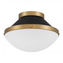 The Xander collection features a playful, mid-century-inspired design with clean lines and fun pops of color. It has white opal glass and gold accents, creating a two-toned finish that adds a touch of whimsy. This versatile fixture can be used in various settings, making it a stylish and functional addition to any room.