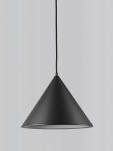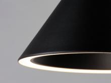 These classic cone pendants available in Matte Black or Matte White appear typical from the outside but take on a different personality from below. These pendants are illuminated on the bottom perimeter creating a black abyss on the inside generating an in