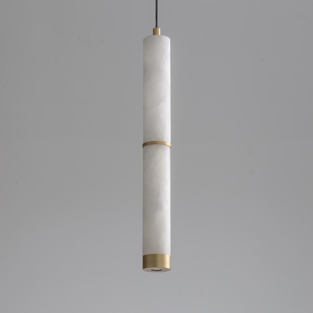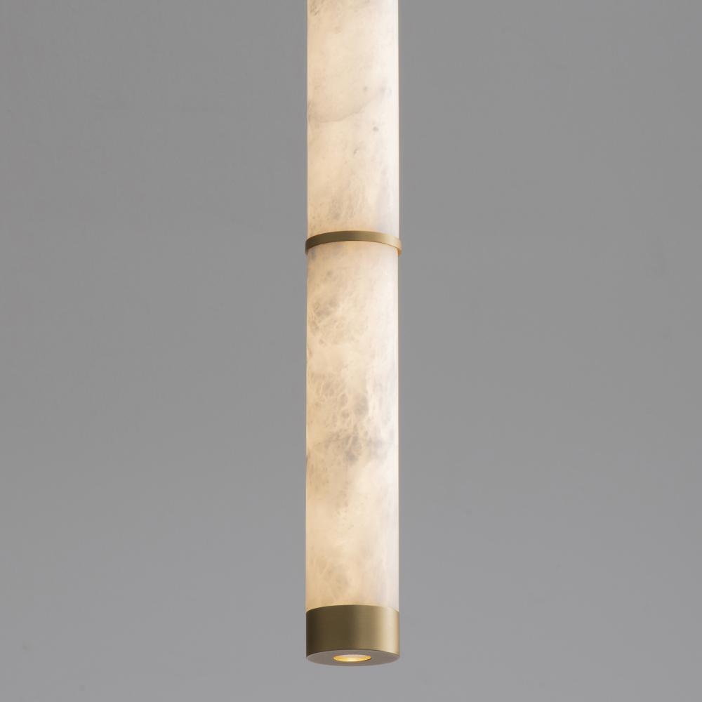Featuring carved Spanish Alabaster shades in sleek cylindrical forms, the Aragon collection conceals high-powered LED light sources within, providing both beauty and functionality. The natural alabaster is elegantly complemented by plated Gold accents, add