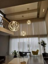 A sculpture of durable steel and aluminum channel is gracefully formed with offsetting waves of motion. This collection is fully dimmable for a great combination of form and function.