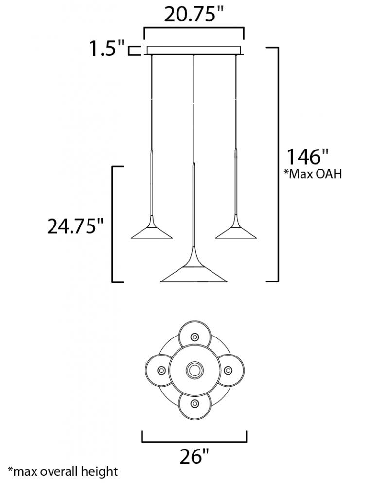 Elongated stems seamlessly transition to a modern cone shaped shade. Encased in the Polished Chrome stem is a remarkable, high-powered LED that illuminates the crystal clear acrylic cone for a crisp, contemporary lighting design.