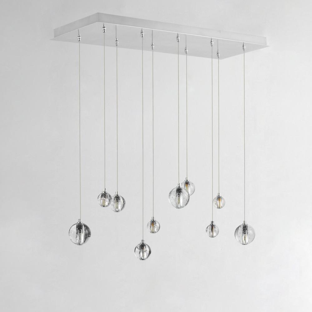 Bubble glass balls of various sizes are supported by adjustable cables for a wide variety of designs. The glass balls are illuminated by replaceable LED bulbs and are fully dimmable.