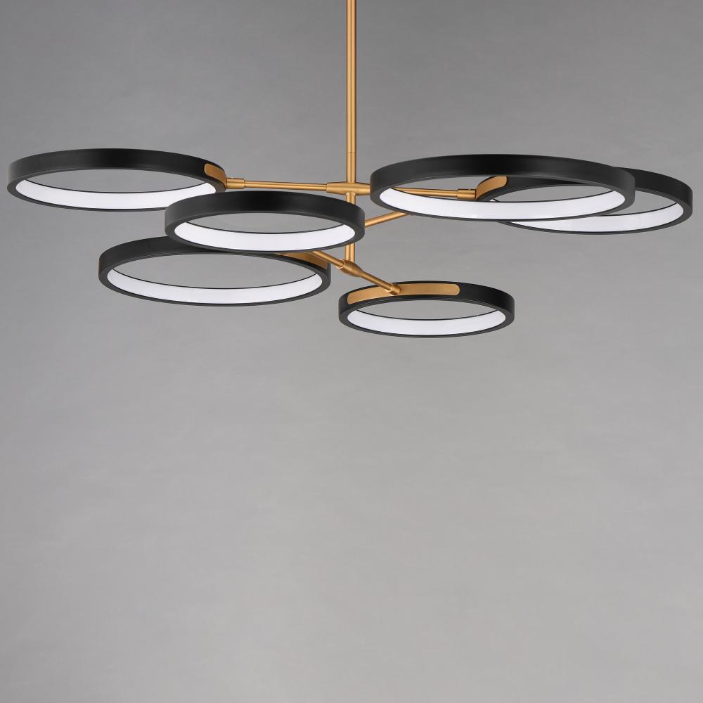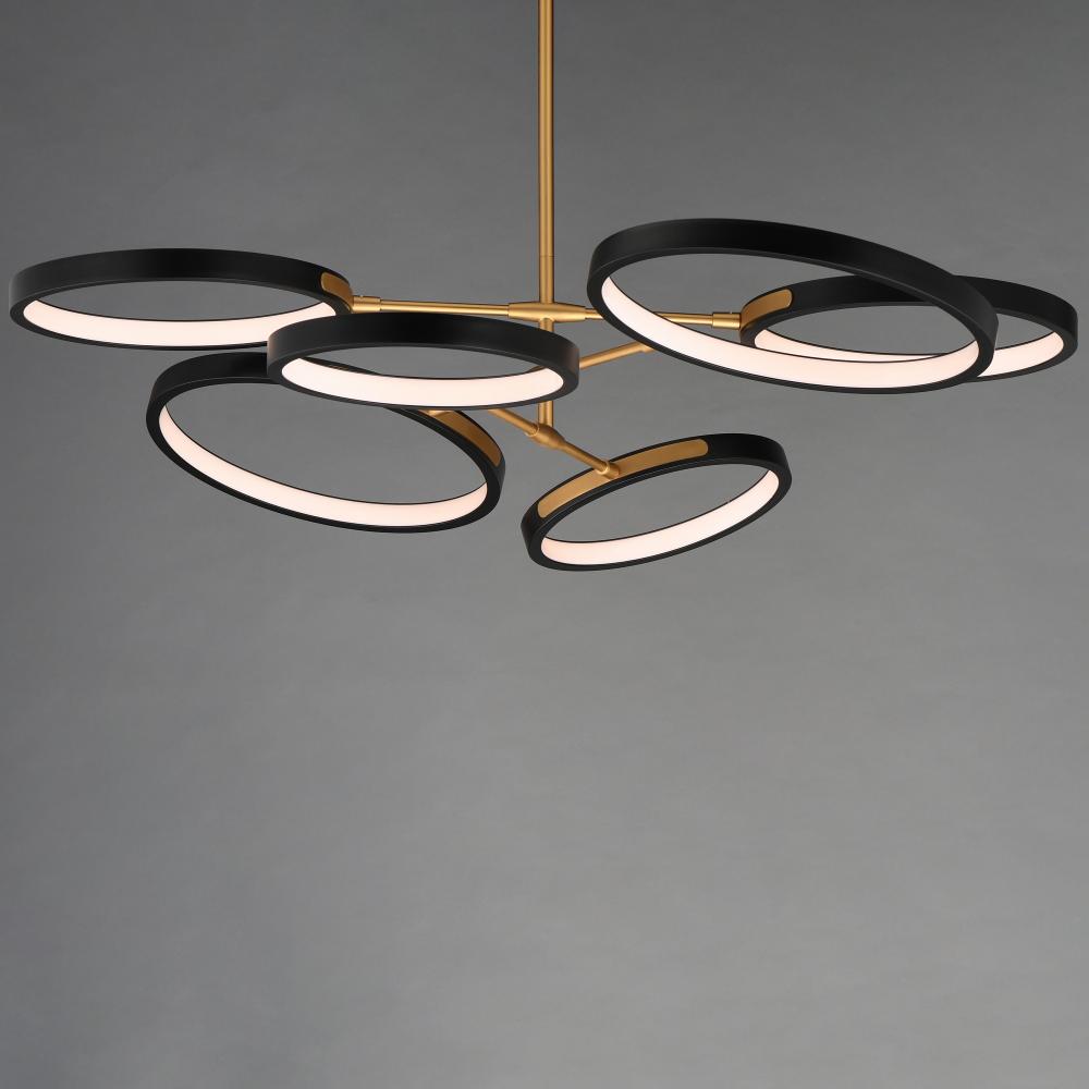 Rings of various sizes finished in Black are supported from a column of soft Gold. This European classic is a soft contemporary design which works in today's home decor.