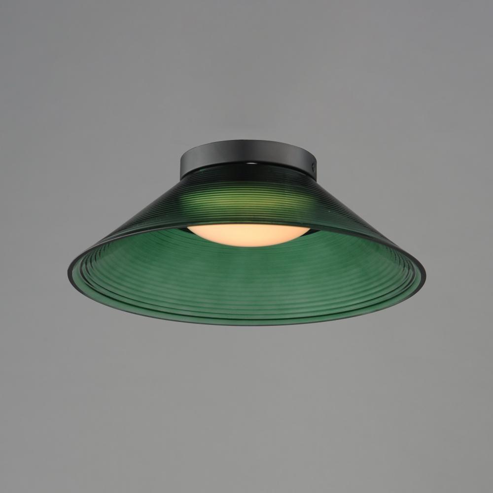 A tapered, ribbed glass shade adds a contemporary edge to a simple design. Available in Clear Ribbed glass with a plated Gold frame or in Emerald Green or Smoked glass with Matte Black frames. These retro-futuristic shades minimize peripheral glare, while