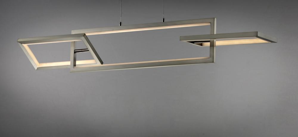Chain links of Satin Nickel are illuminated internally by encased LED light. The suspending frames are adjustable to create different expansions of the linear pendants and flush mounts. A coordinating wall sconce completes this streamlined contemporary col