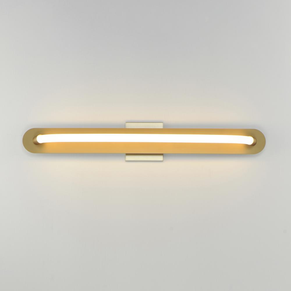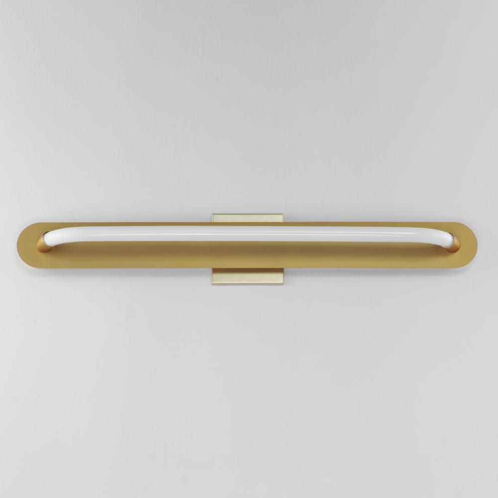 A single loop of white tubing features an omnidirectional LED light. The full backplate can be mounted on a single gang junction box for a clean installation and is available in either Polished Chrome or Gold. A five-inch cover plate is included for instal
