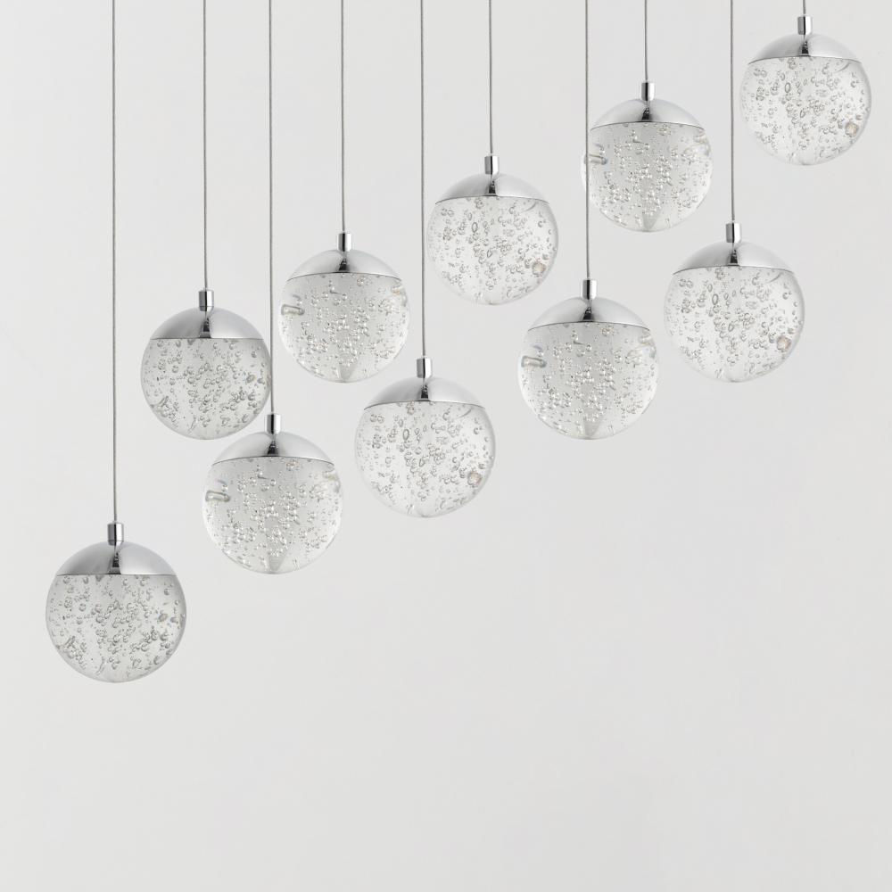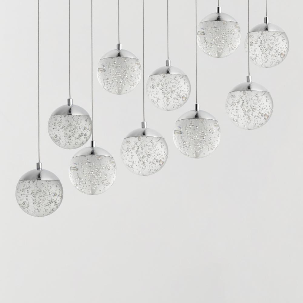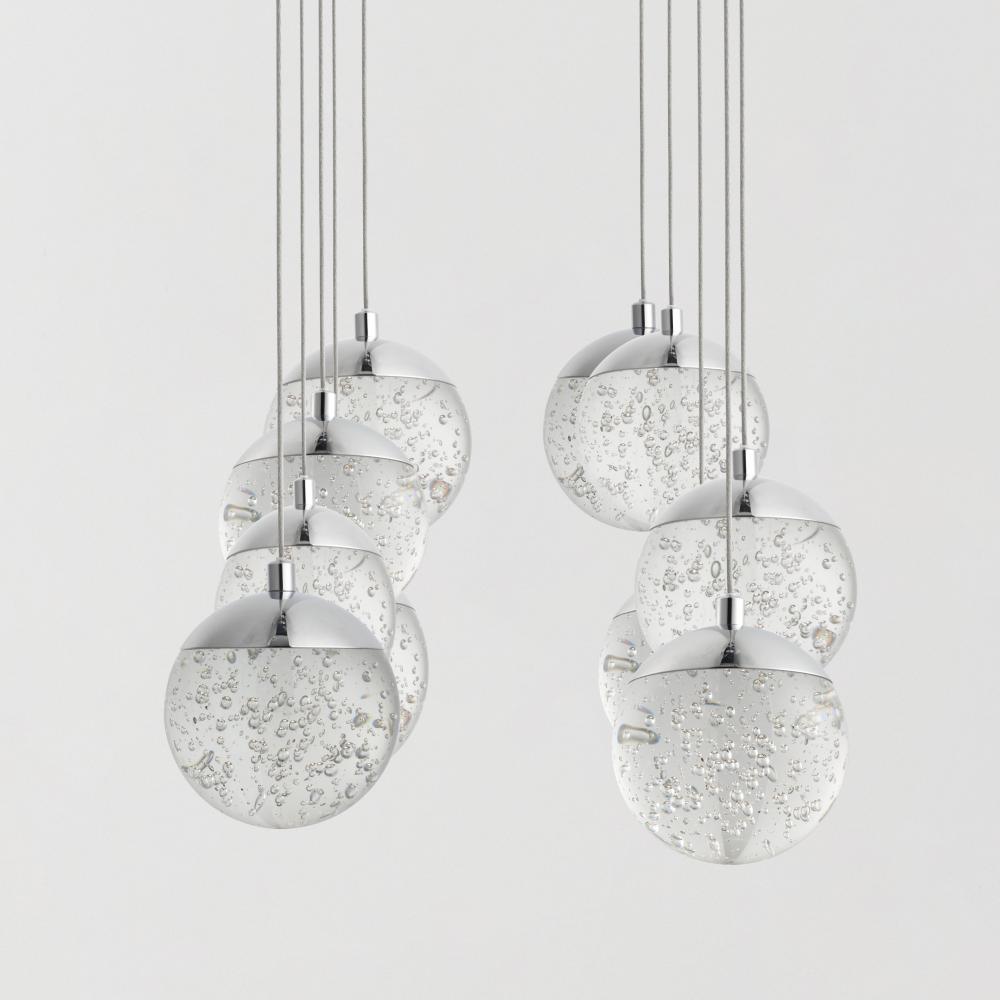 We took this popular collection and made it better. We took the xenon bulb out of the middle and enclosed a LED module in the cast Polished Chrome cap that supports the clear bubble glass balls. The glass screws into the cap so there are no visible screws