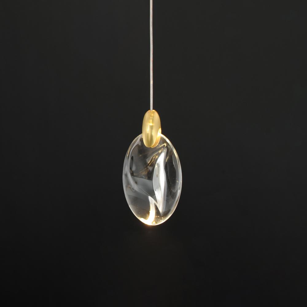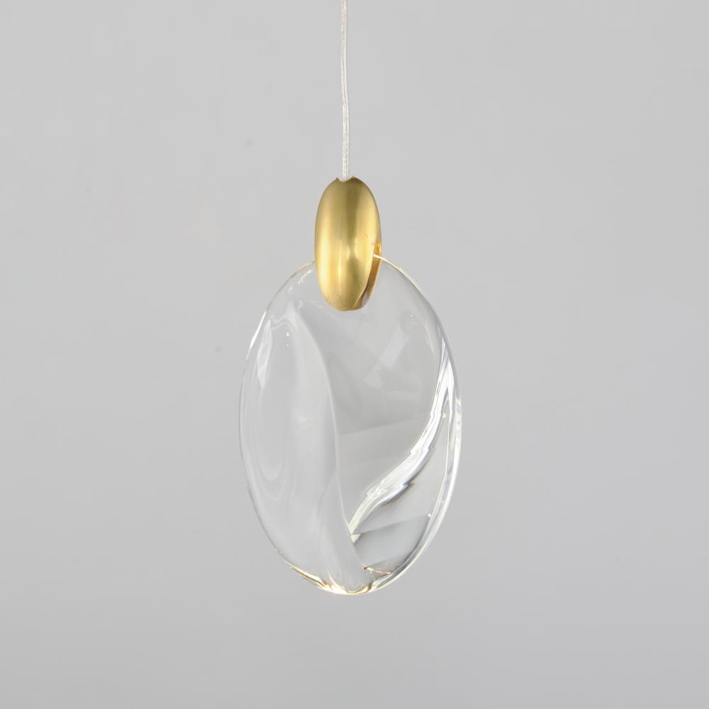 As if naturally formed from the ebbing shores of a riverbed, smooth and irregularly shaped crystal pebbles are suspended by cast metal clasps in a Polished Gold finish. Discreetly illuminated by concealed LED light sources within the clasps, additional dow
