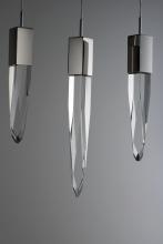 Stalactites of Clear Beveled crystal suspend from your choice of Polished Chrome or Black supports, can be hung at various heights to create a spectacular array. The crystal shimmers as light diffuses through the facets powered by 90 CRI LED dimmable modul