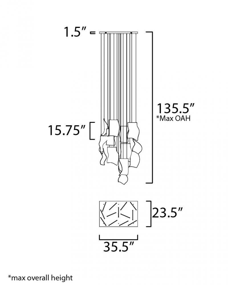 An airy arrangement of abstract forms, the Rinkle pendants feature sheets of transparent acrylic shaped by hand. The light guided acrylic captures the glow of energy efficient LEDs recessed within strips of shining stainless steel, obscuring the source of