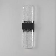 Artisanal cast glass slabs are supported by a Die Cast Aluminum bracket finished in an outdoor rated Black powder coat. Emphasizing the unique beauty of the glasses' imperfect contours, the sconces accentuate these features with concealed LED lighting.
