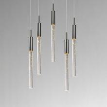 Slender beveled cut rods of bubble glass, illuminated by high power LED modules, suspend in an array of fashionable configurations. Available in Black Chrome with Clear bubble glass and Anodized Bronze with Champagne bubble glass.