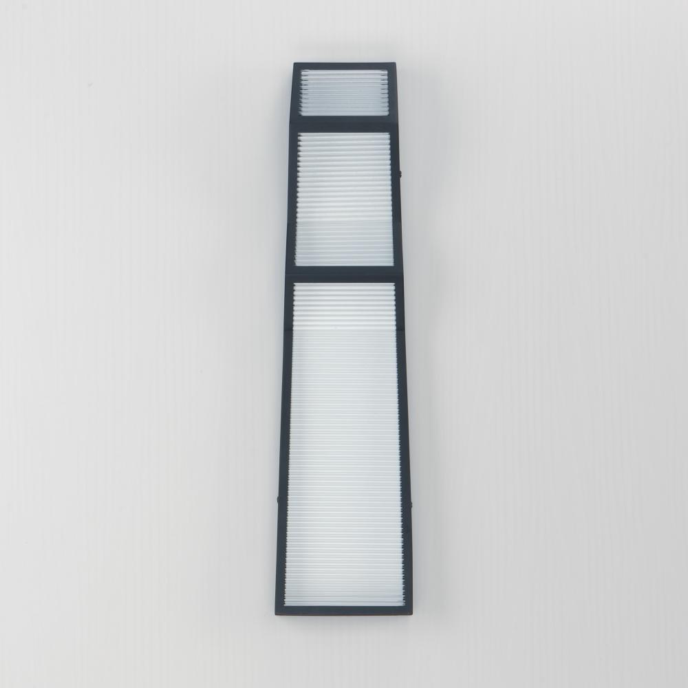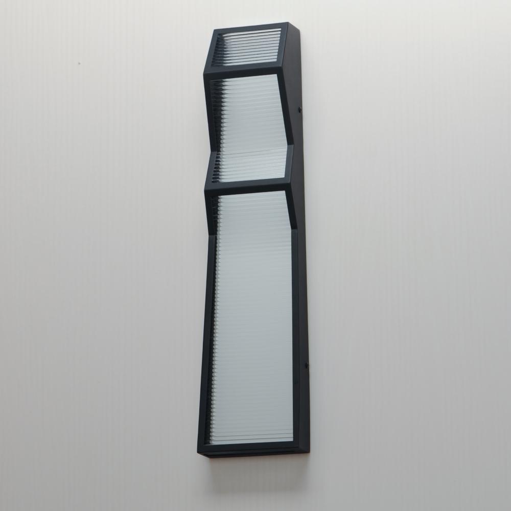 Zigzag towers of ribbed glass and a textured black frame. The ribbed glass texture is back lit by integrated LED strips housed within that shine bright illumination against a white reflective backdrop. With a 3" extension, these wall sconces add visual