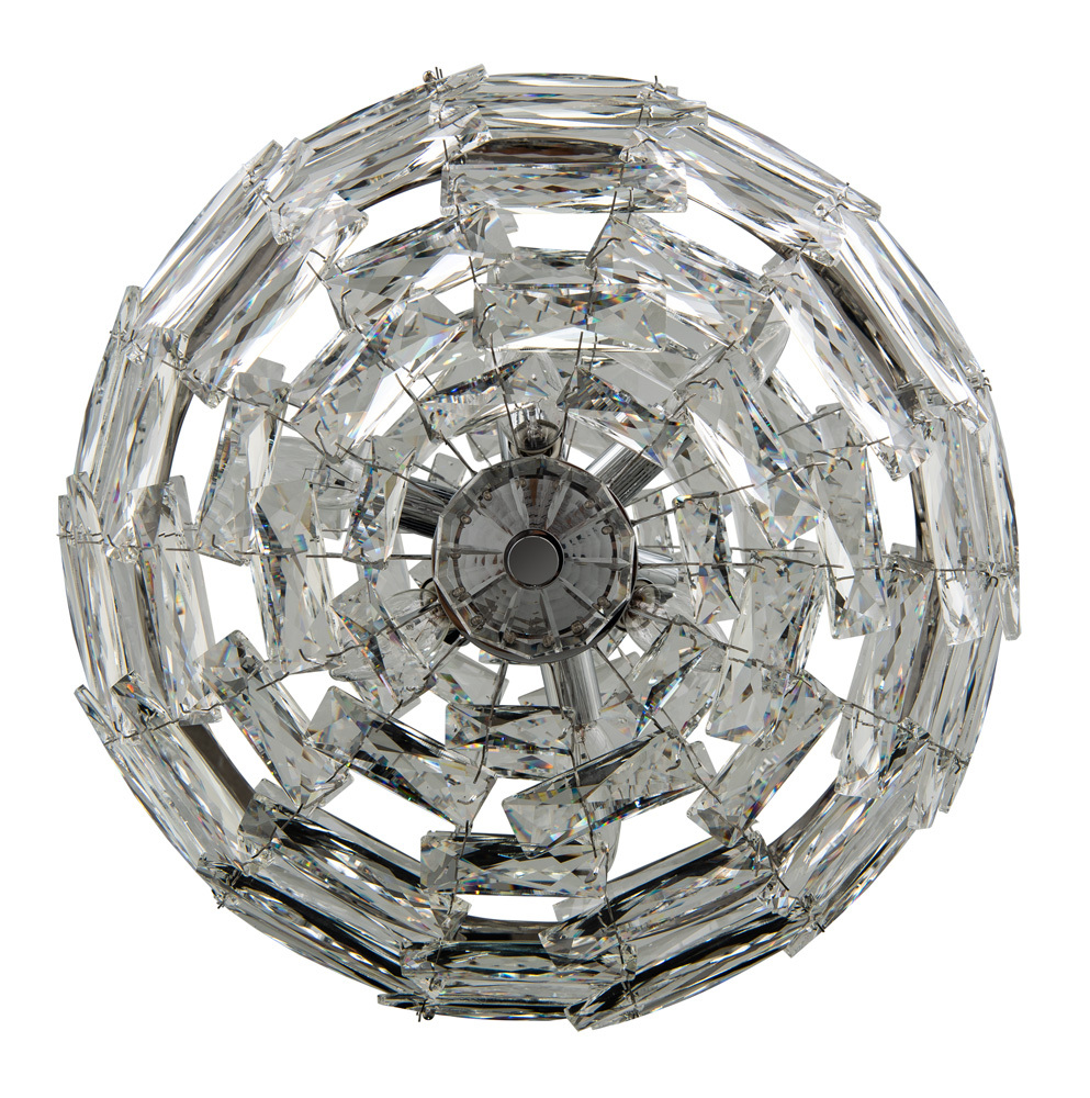 The Alta Collection is made of many crystal bars carefully arranged to make a perfect sphere crystal diffuser. Inside the Chrome (010) frame a sputnik light cluster adds an inner layer. The Alta is a great center piece in any room.