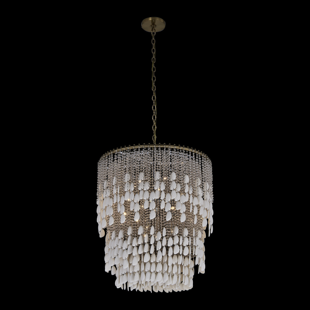 Add sophisticated, boho flair to your space with the Farfalle collection. Sparkling Firenze crystals and bone china accents reminiscent of butterfly wings create an artful interplay of light and texture as the strands naturally move and sway with the breeze. Combined with our Brushed Champagne Gold finish (038), the Farfalle collection blends modern elegance with artistic charm, making it a striking, yet light and airy centerpiece for any room.