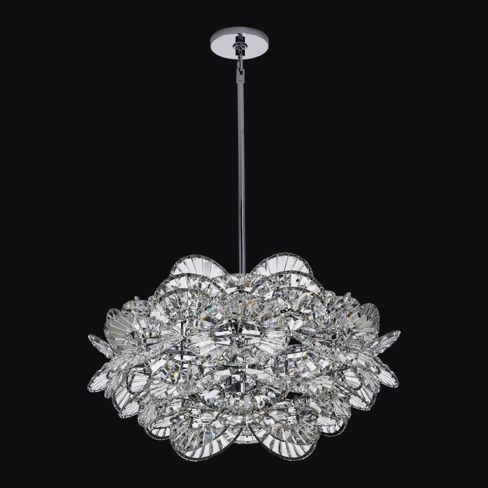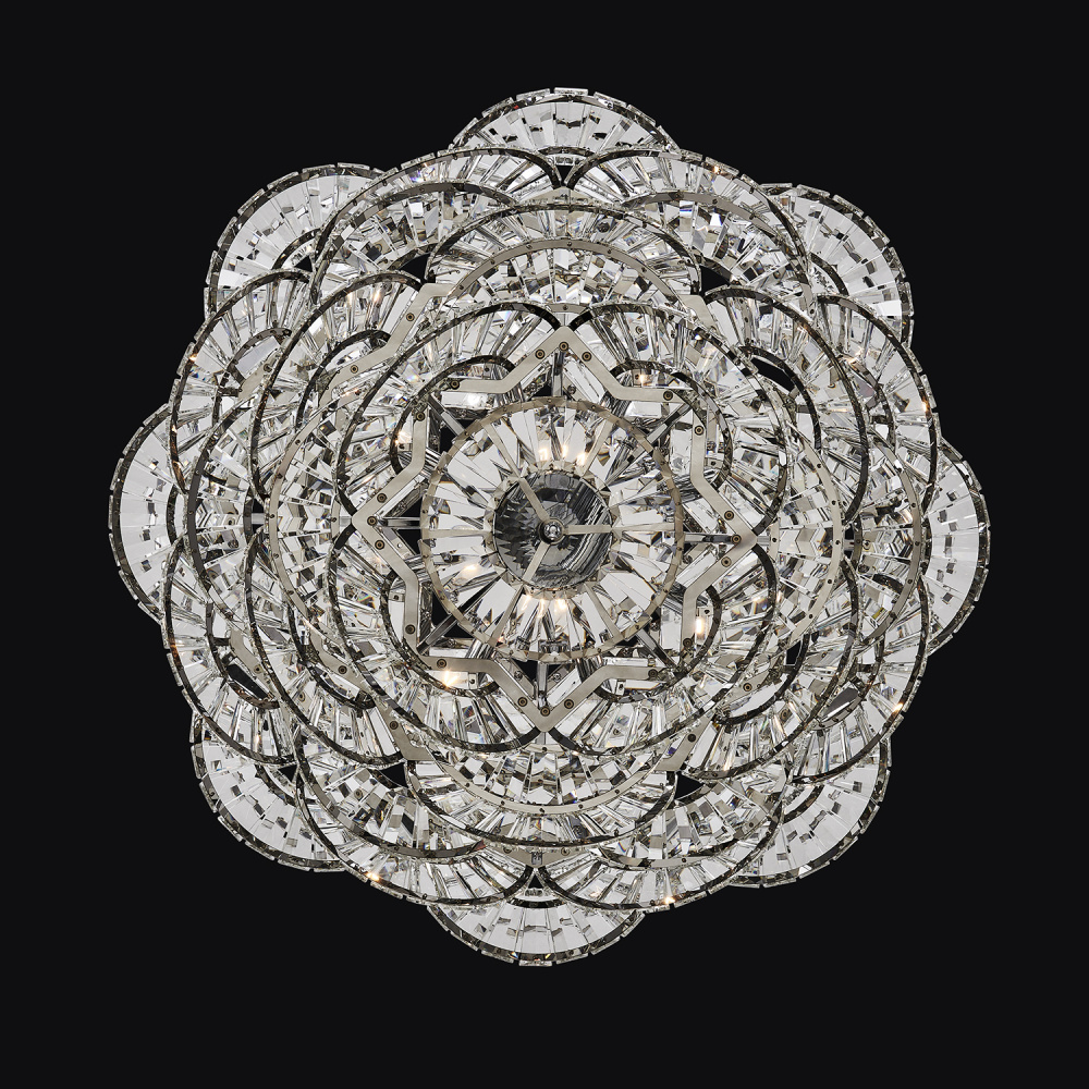 Layers of sparkling, crystal arches form the geometric, yet floral-inspired shape of these contemporary fixtures. The Polished Chrome (010) finish blends seamlessly with our Firenze crystals, adding a light and airy feel to this bold design and jewelry-like statement.