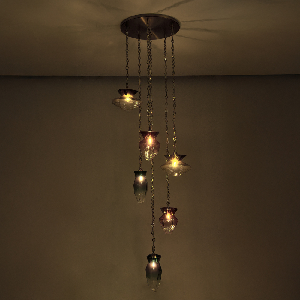 Infuse high fashion into your living space with the Bolsa collection. Outfitted in a warm Winter Brass finish (WB), these fun and fashionable pendants can make a bold statement on their own or make for an impactful trio. The faceted glass hardware can universally fit into all three colored glass, so the shades can be easily reordered, bringing versatility to the home. Leave boring in the past and see what is next with these playful pendants.