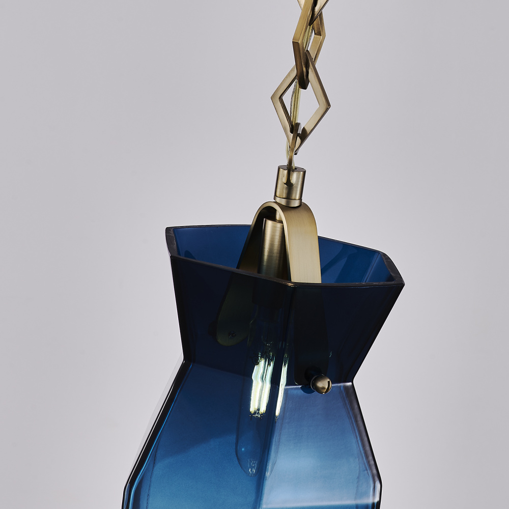 Infuse high fashion into your living space with the Bolsa collection. Outfitted in a warm Winter Brass finish (WB), these fun and fashionable pendants can make a bold statement on their own or make for an impactful trio. The faceted glass hardware can universally fit into all three colored glass, so the shades can be easily reordered, bringing versatility to the home. Leave boring in the past and see what is next with these playful pendants.