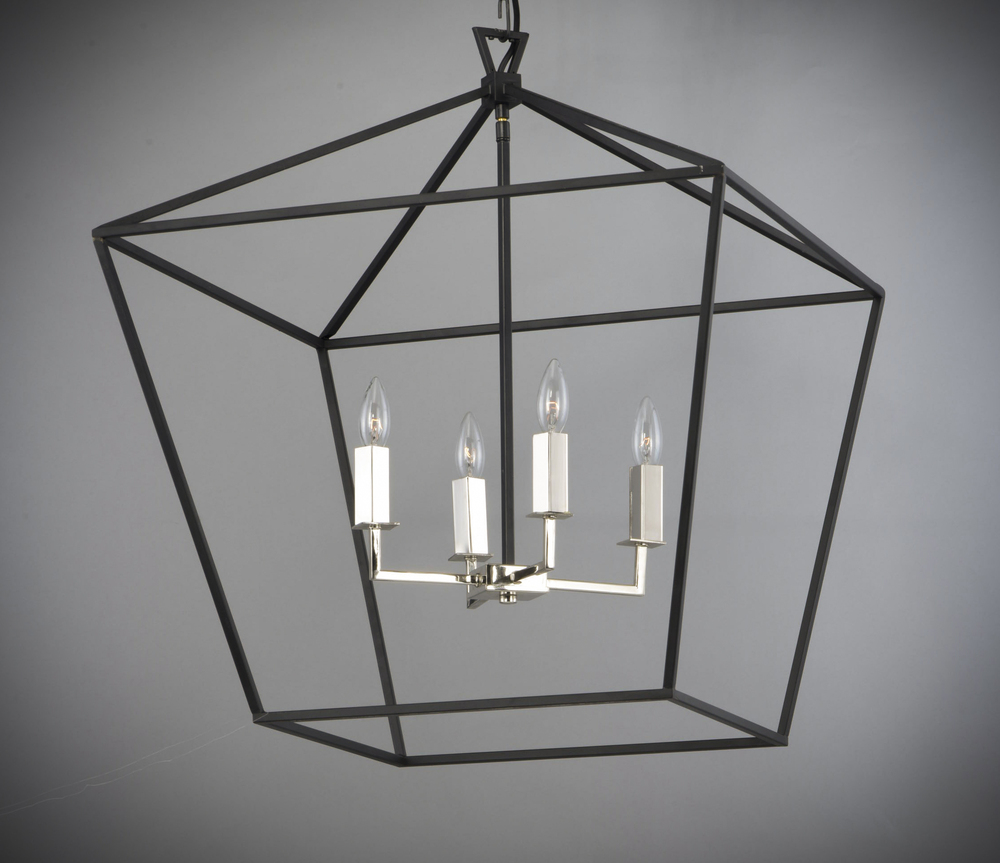 Open air frames finished in Black with Polished Nickel accents makes a simplistic yet dramatic statement for any interior design. Larger scale pieces fill up space without breaking the budget.