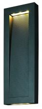 This great architectural outdoor design provides illumination from two places. A slash of light washes down the grated diffuser and out away from the wall while additional light is directed out the bottom straight down that washes the wall and illuminates
