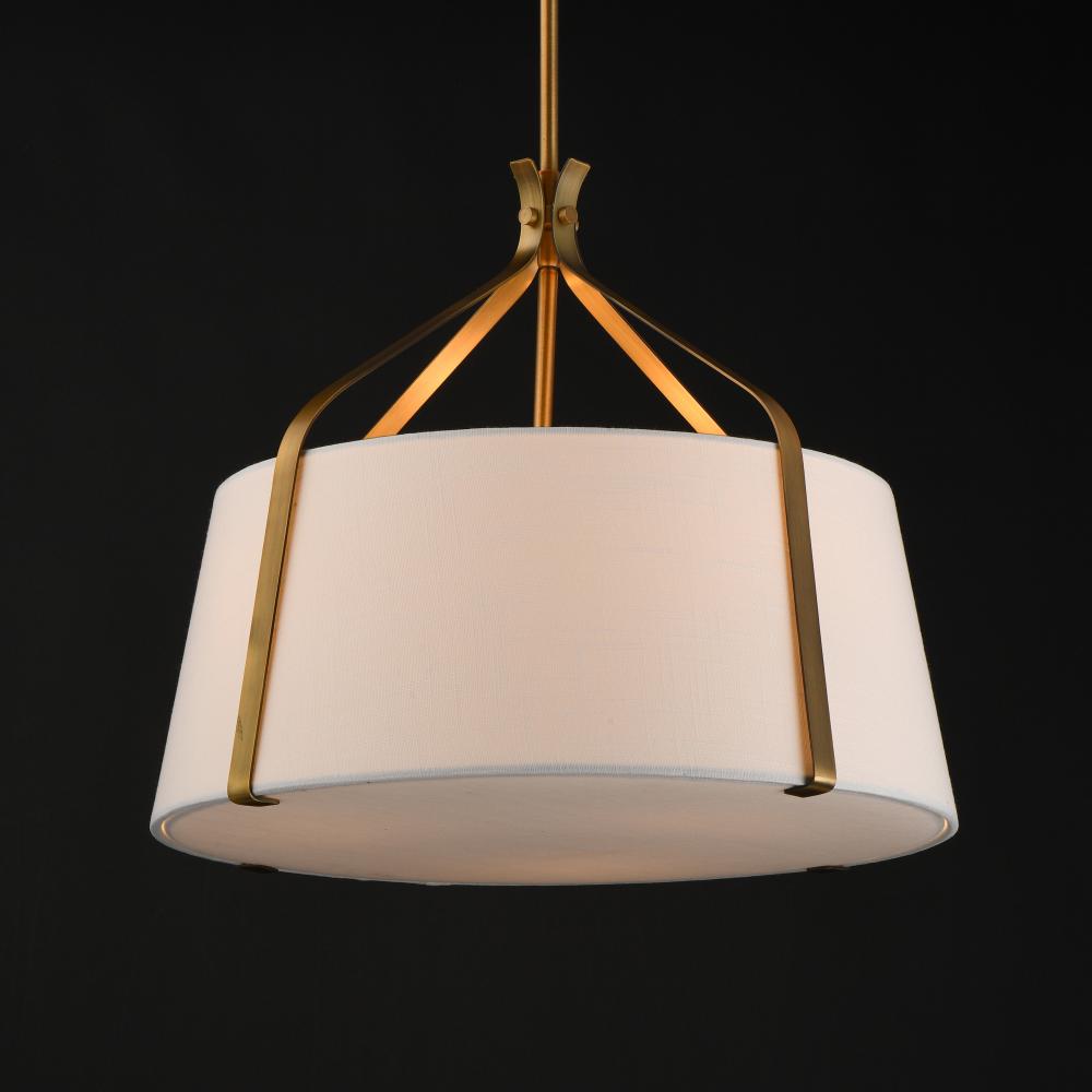 Inspired by timeless tailoring and architectural form, the Bandera collection reimagines the classic fabric shade pendant with refined, sculptural detail. A gracefully flared metal yoke suspends an elegant linen shade--offered in either Oatmeal with Dark B