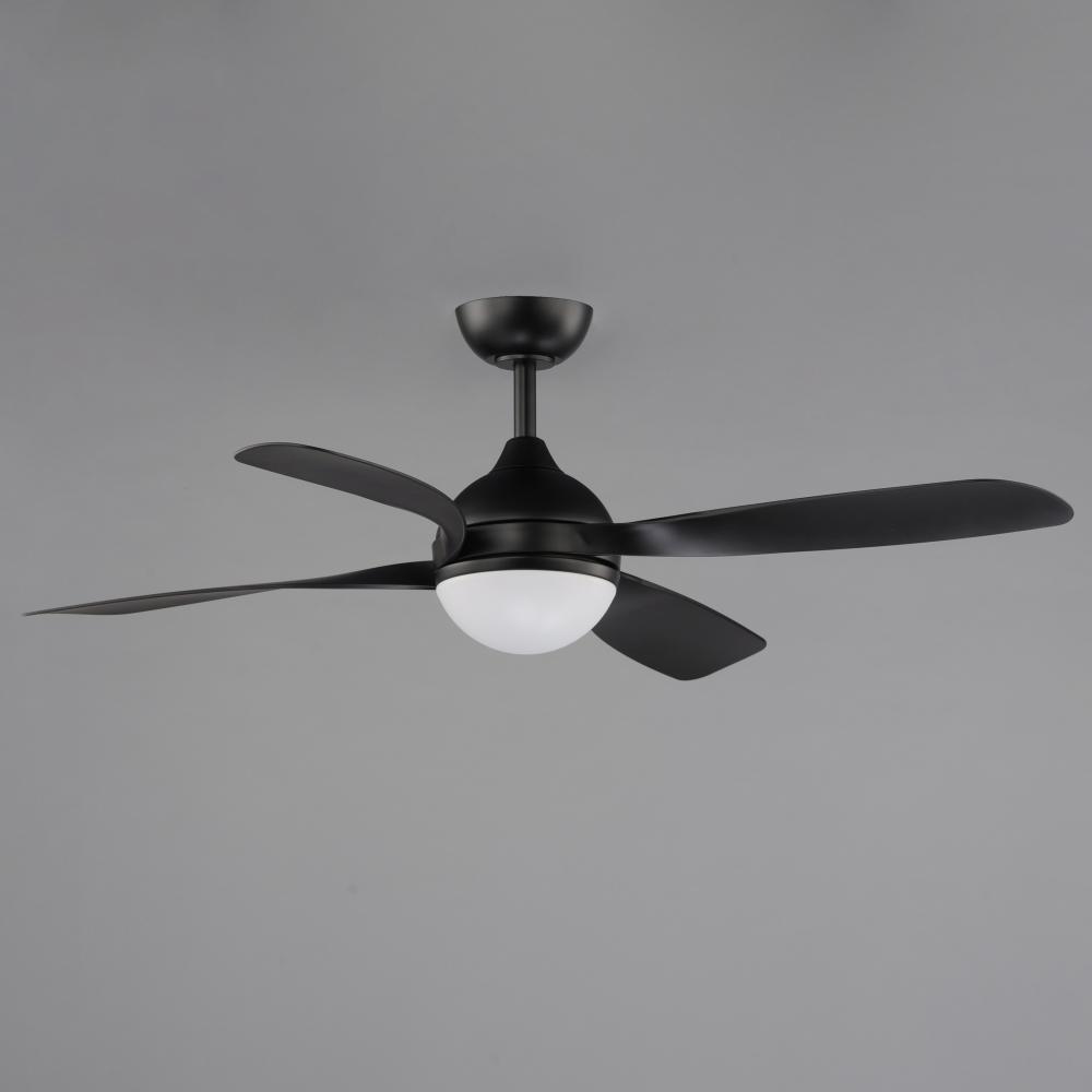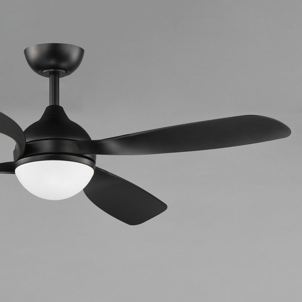 Modern and chic, the Bola collection elevates the standard fan with its beautifully balanced design. A sleek globe frame seamlessly separates the top DC motor housing from the lower LED light kit, while gracefully curved solid wood blades add a touch of na