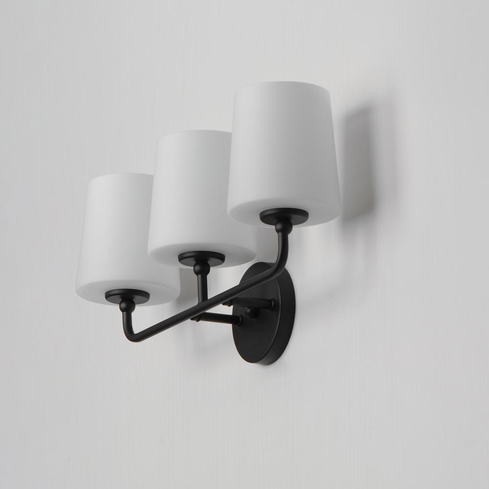 Understated elegance and convenience in its design, the simple curved arms of the Bristol collection outstretch in elongated proportions that terminate at a tapered Satin White glass shade. Designed to emulate a traditional fabric shade, the material being