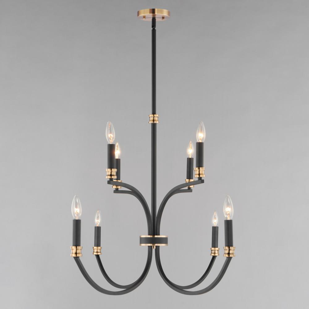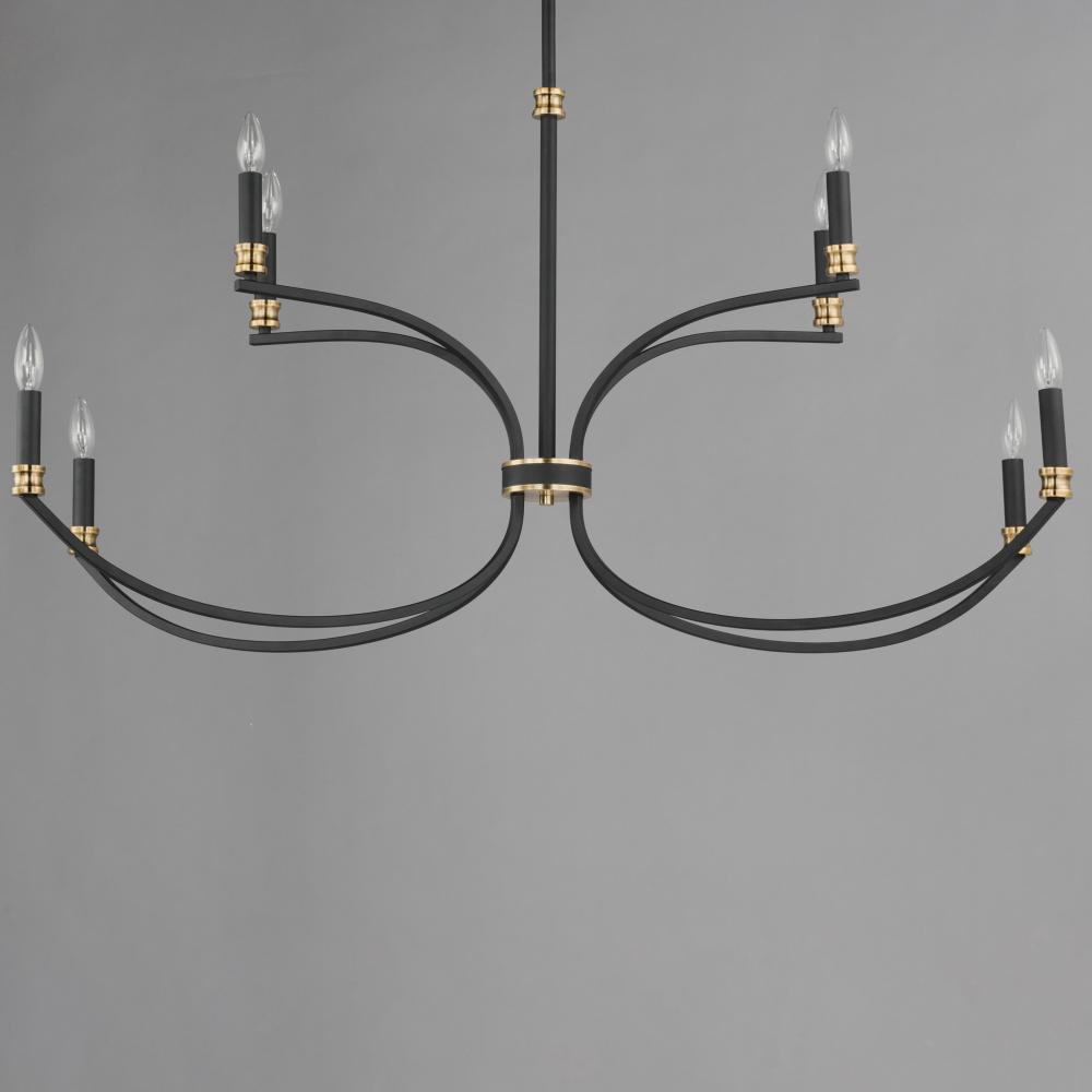 A lovely candelabra style collection with rich accents. This seemingly simple chandelier highlights classically curving accents in a stately combination of Black with Antique Brass accents or chic Weathered White with Gold Leaf accents. Taking a streamline