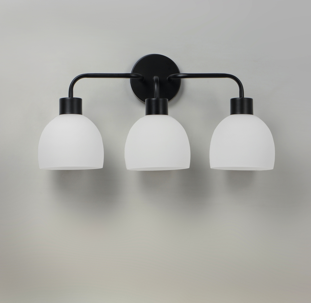 A charming collection of farmhouse inspired design. Satin White glass domes suspend from individually distributed tube arms. Available in Black, Satin Nickel, and a Bronze/Satin Brass combination. This transitional look offers an updated look for both trad