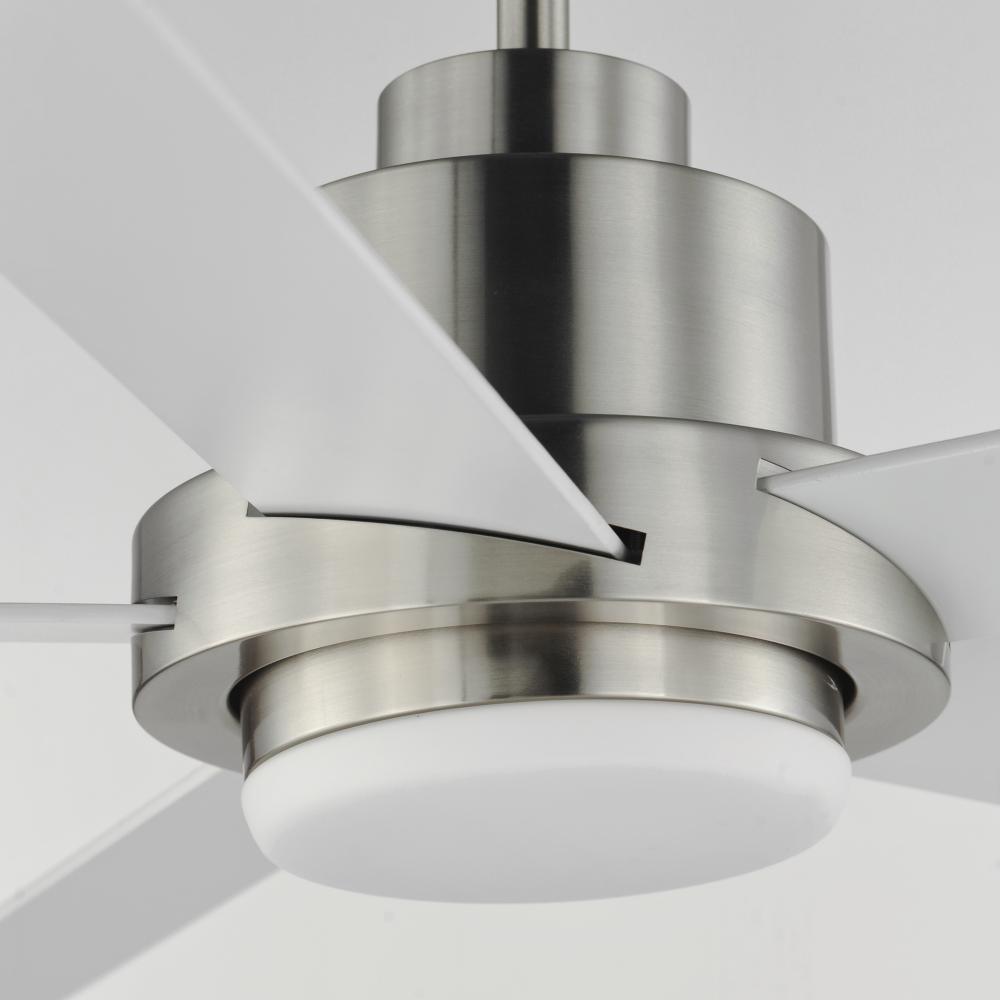 For larger spaces, a larger blade span is sometimes required. This minimalist design is pure and simple. Elongated ABS blades span 60 inches and finished in Matte White contrasting the motor housing's Natural Aged Brass finish. The two tone finish make