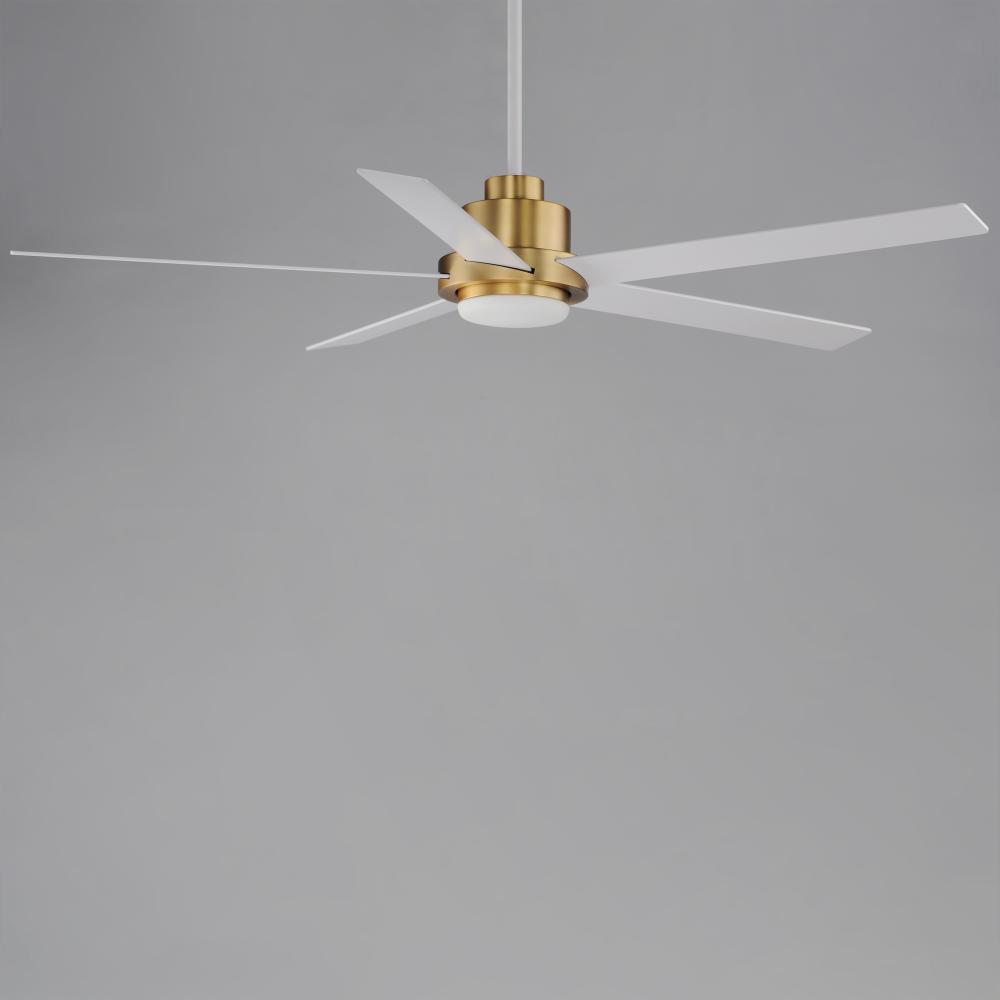 For larger spaces, a larger blade span is sometimes required. This minimalist design is pure and simple. Elongated ABS blades span 60 inches and finished in Matte White contrasting the motor housing's Natural Aged Brass finish. The two tone finish make