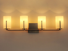 Inspired by the Modernist architect Edward Dart, this collection features straight line frames finished in Satin Brass, Satin Nickel, or Matte Black that support Satin White glass cylinders for a clean and modern look. The frames' ends turn up before t