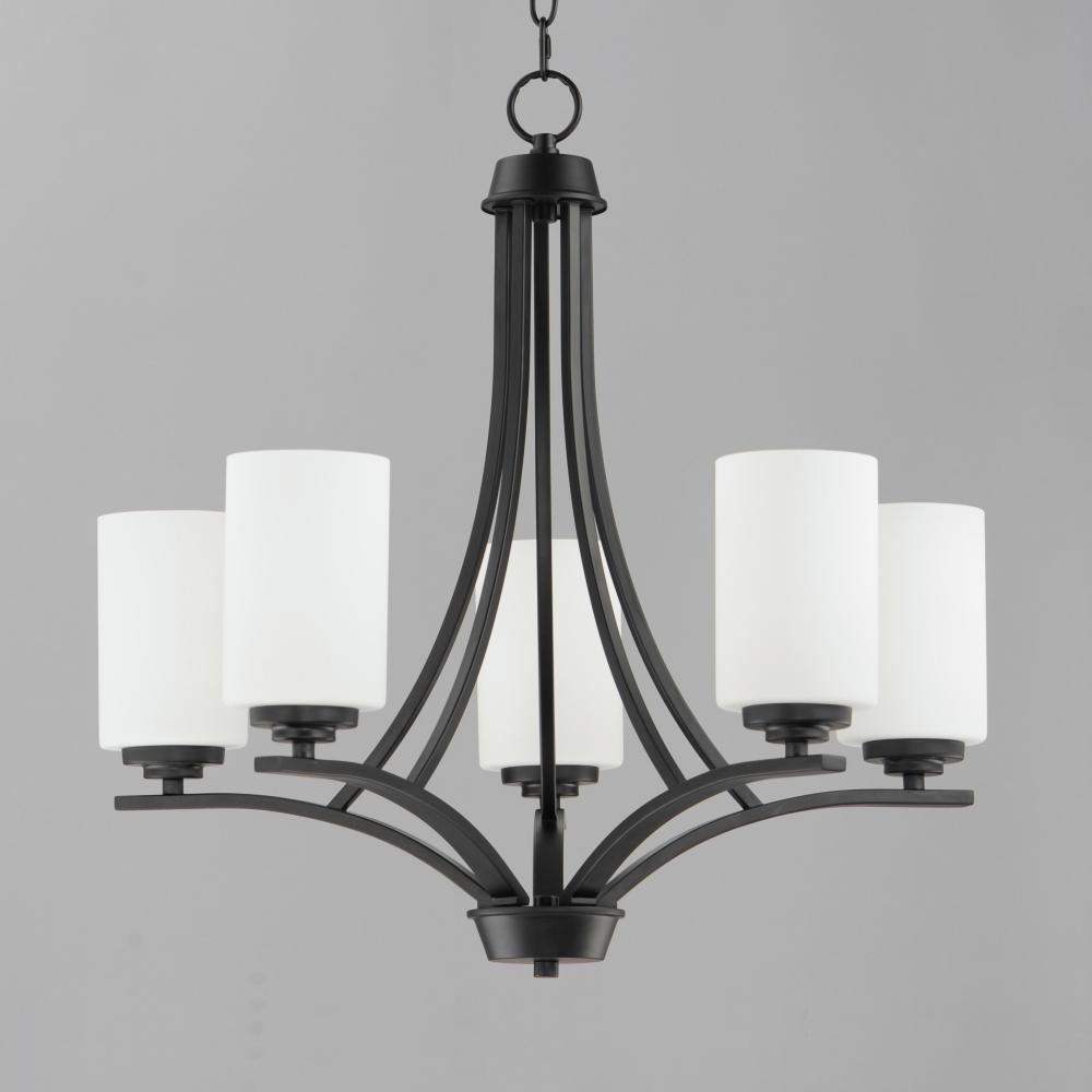 Low sloping arms of rectilinear tubing is finished in a variety of options that include Satin Nickel, Oil Rubbed Bronze, Matte Black, and a contemporary Satin Brass finish. Tall, cylindrical Satin White glass shades soften the light source within. Offered