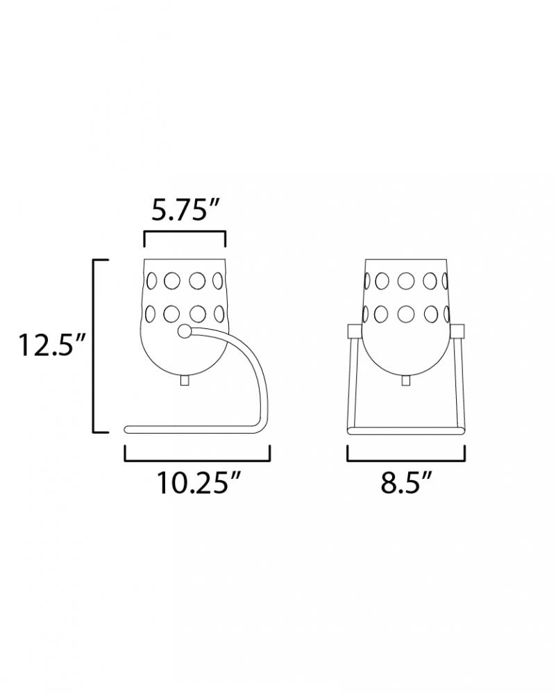Retro configurations of Mid-Century Modern perforated metal designs inspire this collection of pendants, wall and ceiling mounts complete in a two tone powder coat finish. The spun metal shades are punched with large circular perforations that scatter a pa