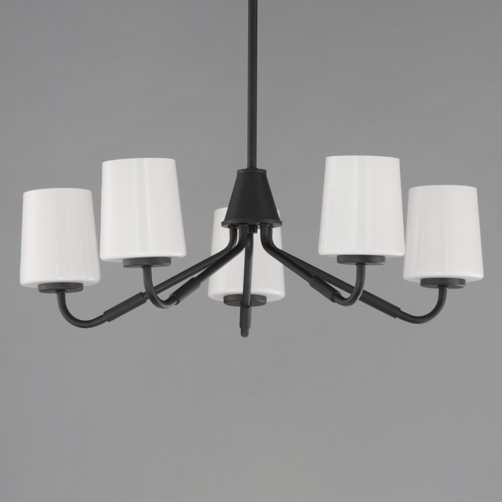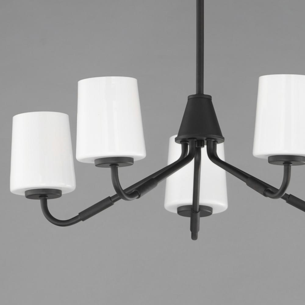Featuring knurled rod details, this lighting collection brings a modern industrial edge to any space. Available in a range of sizes for chandeliers and two styles of bath vanity lighting, it offers versatility for different design needs. Offered in Matte B