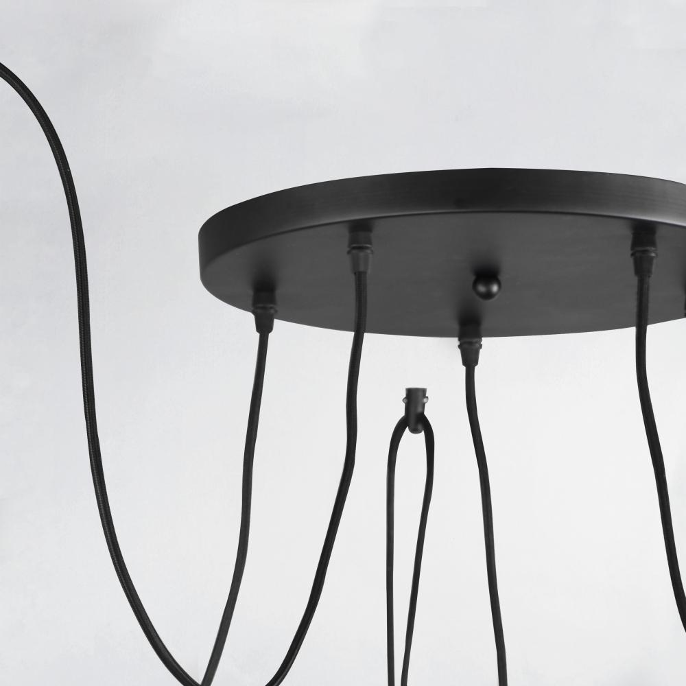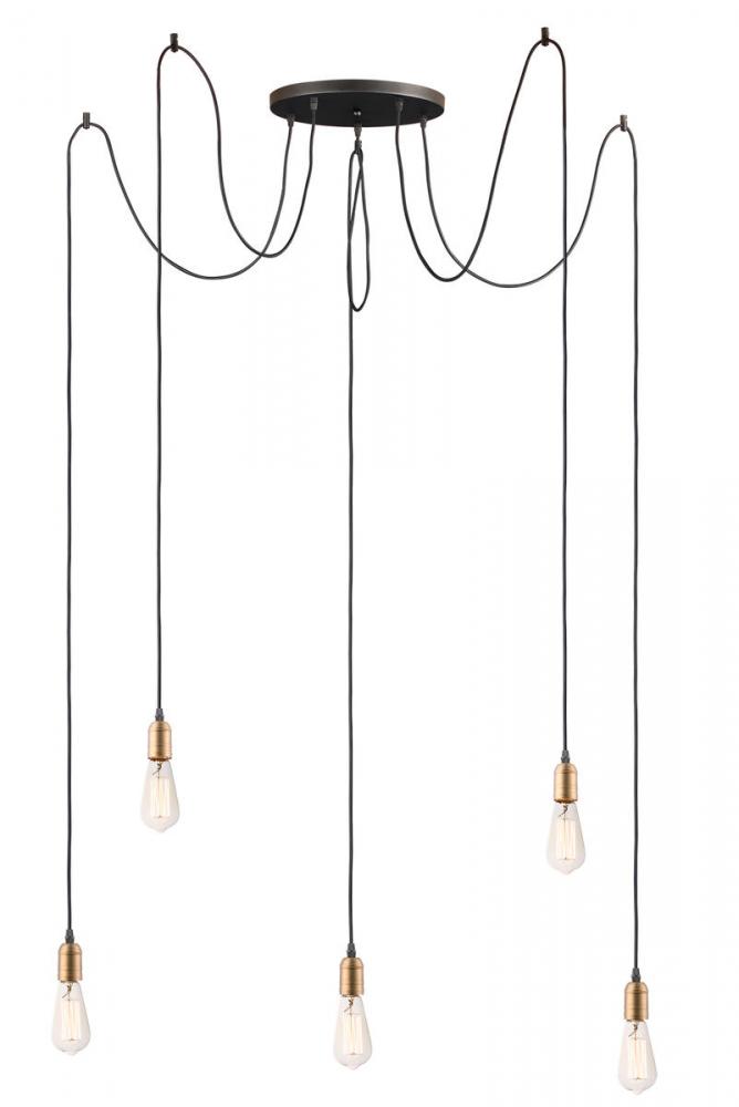 Cords of Black fabric support metal sockets finished in a natural Antique Brass allow you to create unique and fun lighting. All except the single pendant are supplied with hangers that attach to the ceiling to allow you to swag each socket. There are a nu