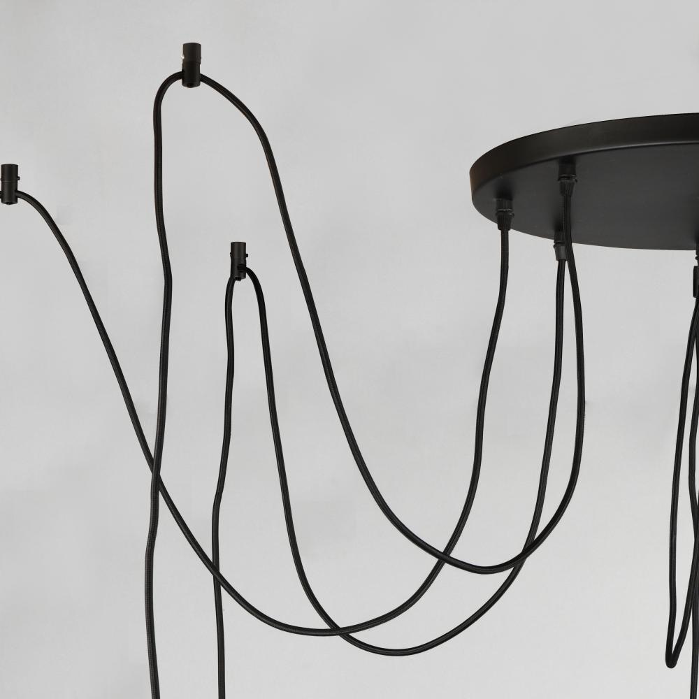 Cords of Black fabric support metal sockets finished in a natural Antique Brass allow you to create unique and fun lighting. All except the single pendant are supplied with hangers that attach to the ceiling to allow you to swag each socket. There are a nu