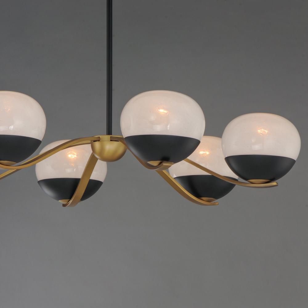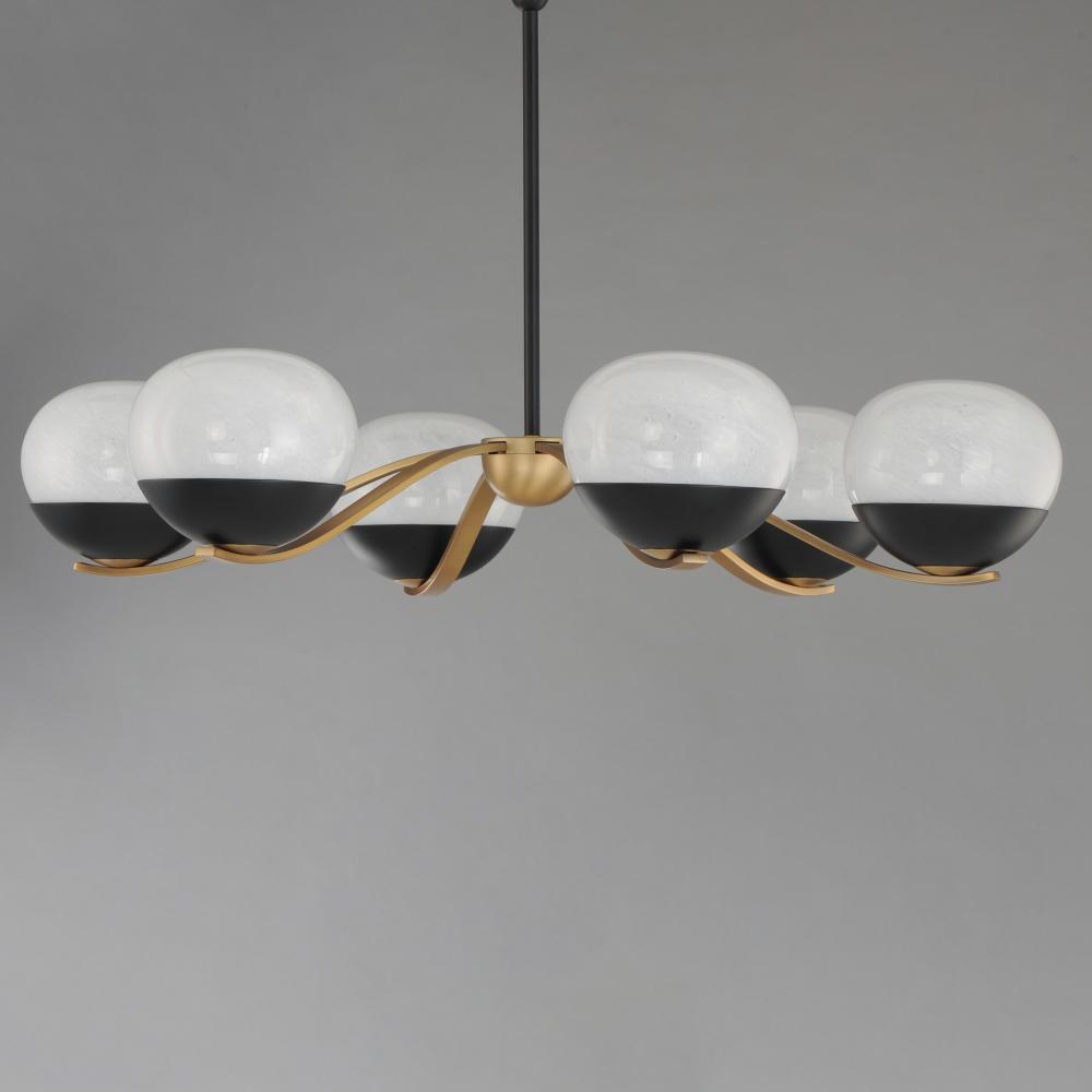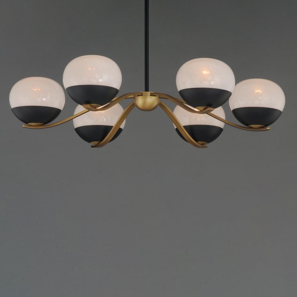 Notably stylish and unique, the Lucerne collection features oblong glossy glass globes with a swirling Marble pattern that exudes sophistication. The distinctive rectangular arms gracefully curve downward, seamlessly blending robust metal fabrication with