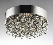 A sea of crystal strands suspend from within drums of steel which are finished in your choice of Bronze with Scotch crystal or Polished Chrome with Mirror Smoke crystal. Hidden inside the drum is a powerful dimmable LED source which has the crystals dancin