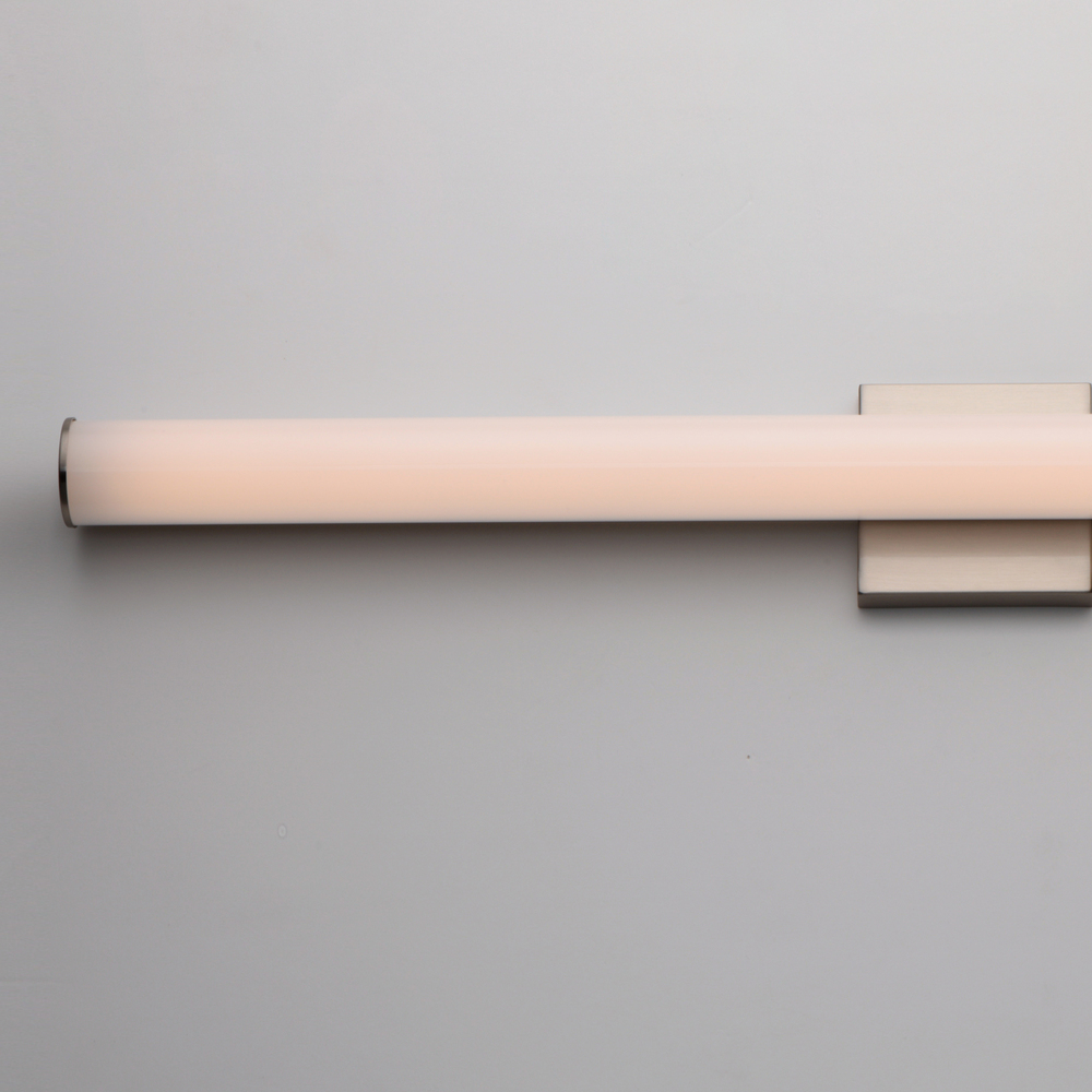 Tubular shaped White acrylic diffusers mount to frames of Polished Chrome, Satin Nickel, or Black. Powered by 3000K LED these fixtures work well in a variety of contract applications.