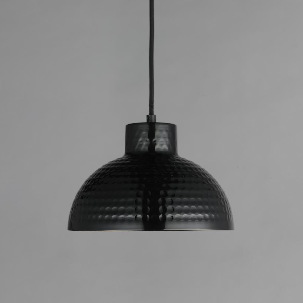 Hammered metal dome shades are painted in glossy enamel paints that welcomes a nautical look. Available in Sage Green with a glossy white interior or Glossy Black with an Antique Copper interior, these pendants embody a nostalgic element that prevails alon